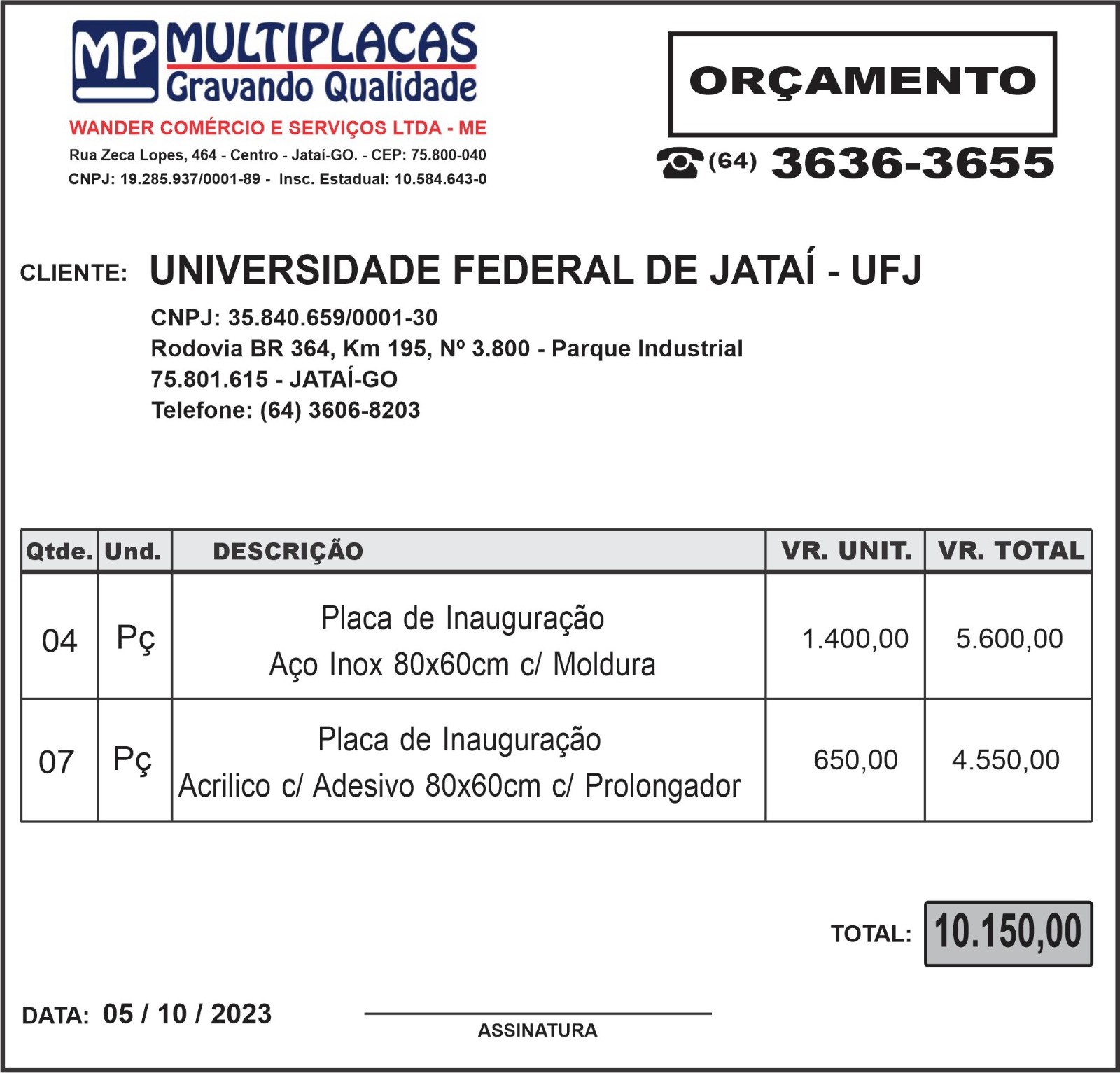 Para publicação no site https://compras.jatai.ufg.br/ da Universidade Federal de Jataí. Atendendo a recomendação 1.6.2.1 do Acórdão nº 389/2020-TCU-Plenário.
