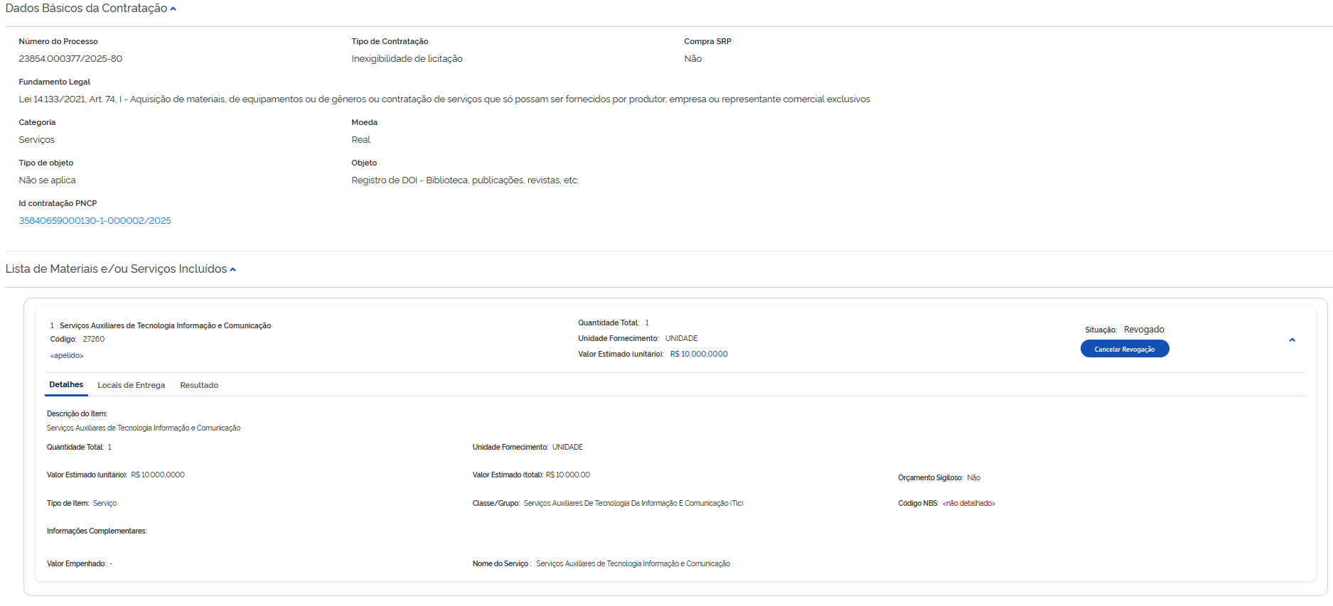 Para publicação no site https://compras.jatai.ufg.br/ da Universidade Federal de Jataí. Atendendo a recomendação 1.6.2.1 do Acórdão nº 389/2020-TCU-Plenário.
